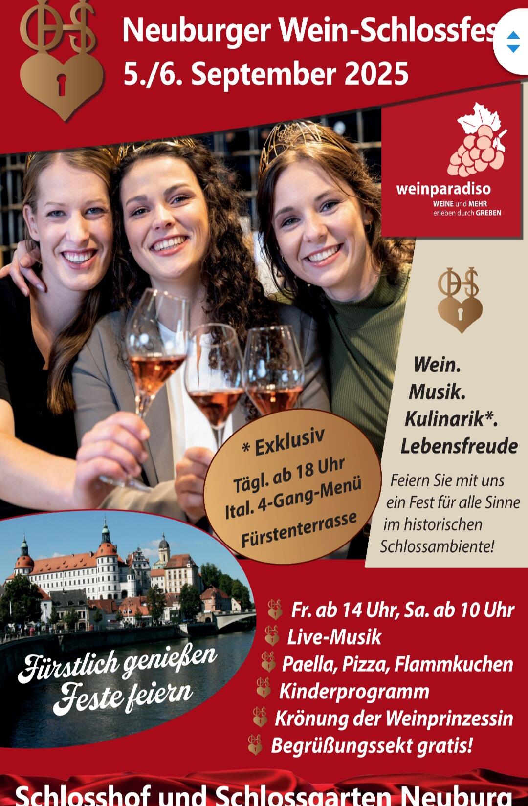 Neuburger Wein-Schlossfest am 05. und 06.09.2025 im Schlosshof und im Schlossgarten in Neuburg an der Donau.