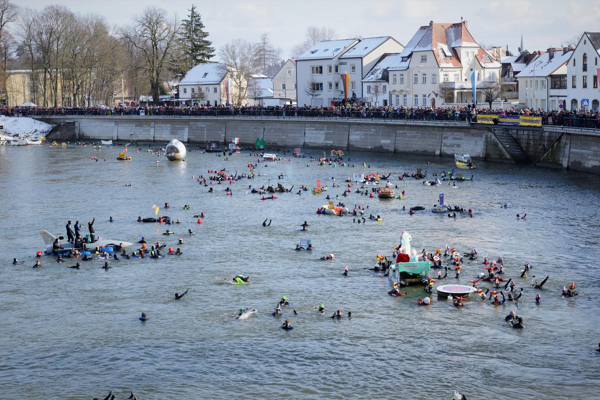 Wenn am letzten Samstag im Januar wagemutige Wasserfreunde mitten im Winter in die kühlen Wellen der Donau springen, ist das ein Spektakel, das sowohl Zuschauer als auch die Badenden begeistert. Rund 2000 Teilnehmer lockt das Donauschwimmen jedes Jahr aus ganz Deutschland und vielen Teilen Europas nach Neuburg.