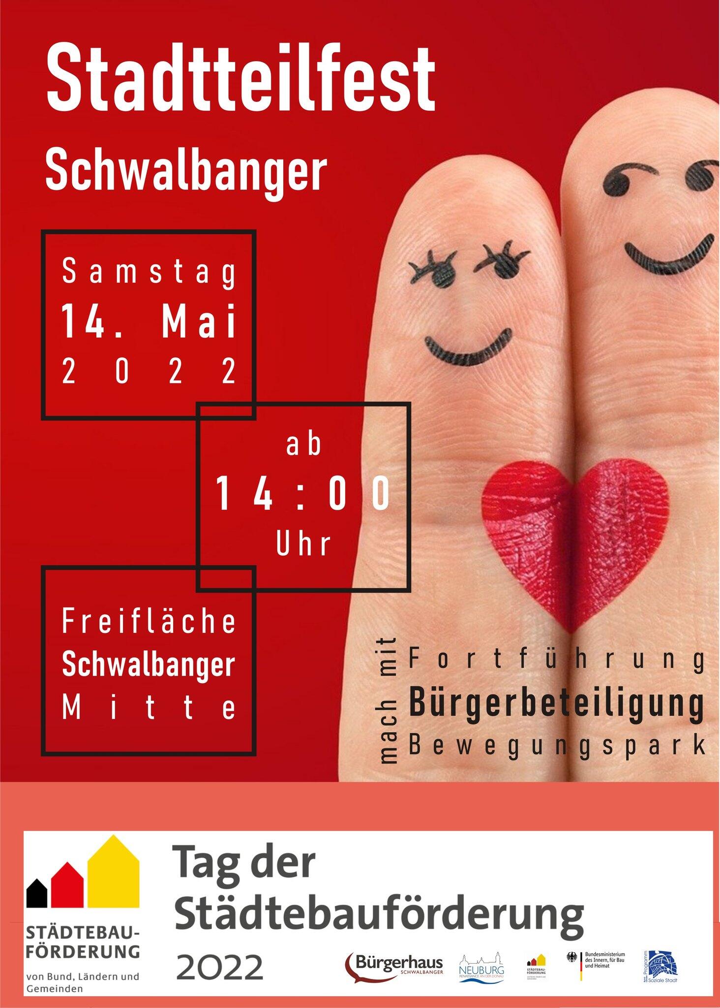 14 Mai Stadtteilfest Schwalbanger Samstag 14.05.2022 14:00 Uhr Stadtteilfest Schwalbanger mit Bürgerbeteiligung zum Bewegungspark